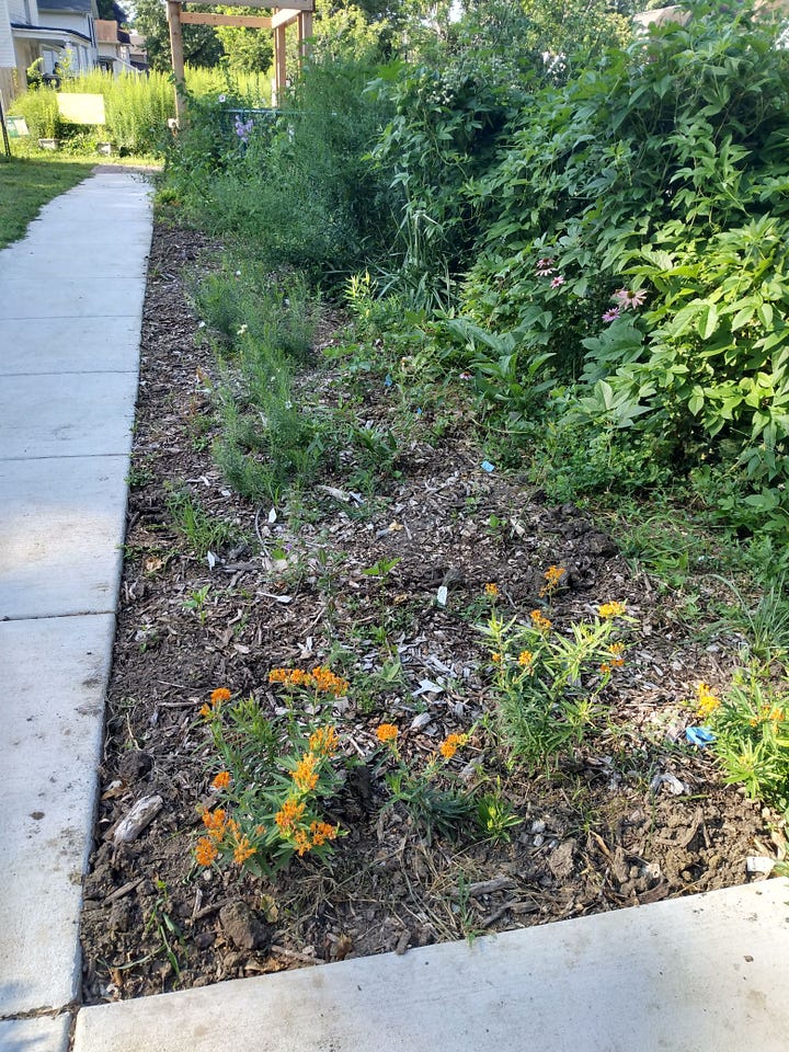 This spring, the Enos Park Neighborhood Gardens took on a new project aimed at creating a more welcoming space not only for visitors, but also for pollinators. Following the installation of a concrete pad and sidewalk to improve wheelchair access, the strip of land between the walkway and the garden fence was identified as the ideal site for a new pollinator garden.