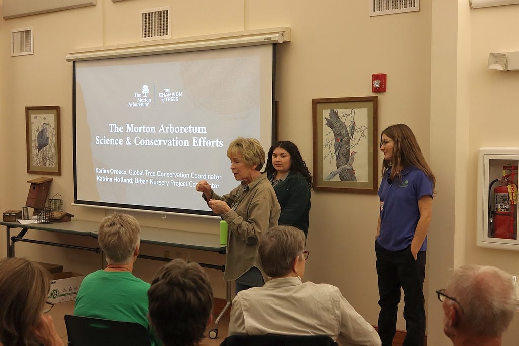 The evening’s speakers were Karina Orozco and Katrina Holland from the Morton Arboretum sharing great information about four key programs: the Center for Tree Science, Chicago Region Trees Initiative, the Global Tree Conservation Program, and ArbNet. Together, these programs advance research, promote healthy urban forests, protect threatened tree species, and connect arboreta across the globe. Watch for the program to be posted on our website soon!